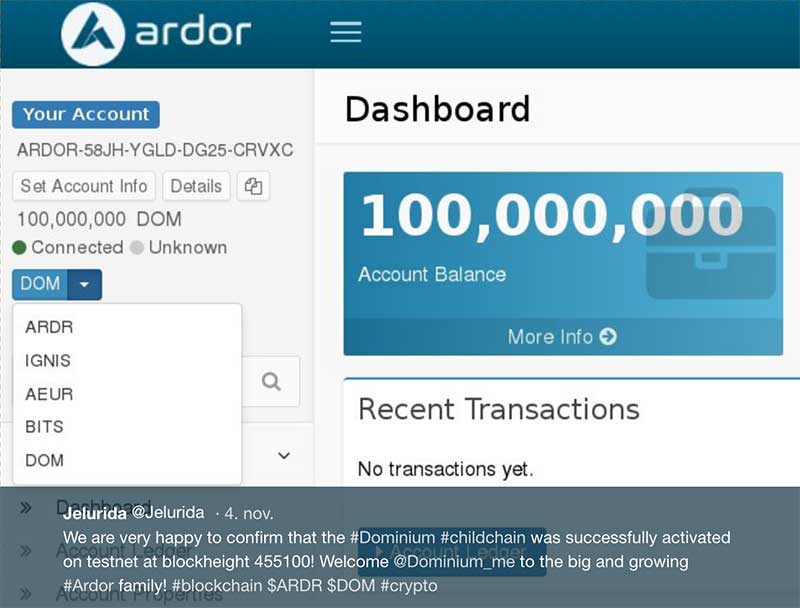 If you own DOM, now would be a good time to associate your account with an Ardor wallet and identify yourself (KYC) on their website. All accounts that have passed KYC (minimum Clearance Level 1) and have an Ardor wallet associated with their account will get their balance transferred to the upcoming Ardor child chain for free through a JSON file which will be created on the 12th. Transactions after the 12th of November will carry a small publishing fee. Dominium PROMISES that your passphrase never leaves your device and that only your wallet address and public key are shared with Dominium.